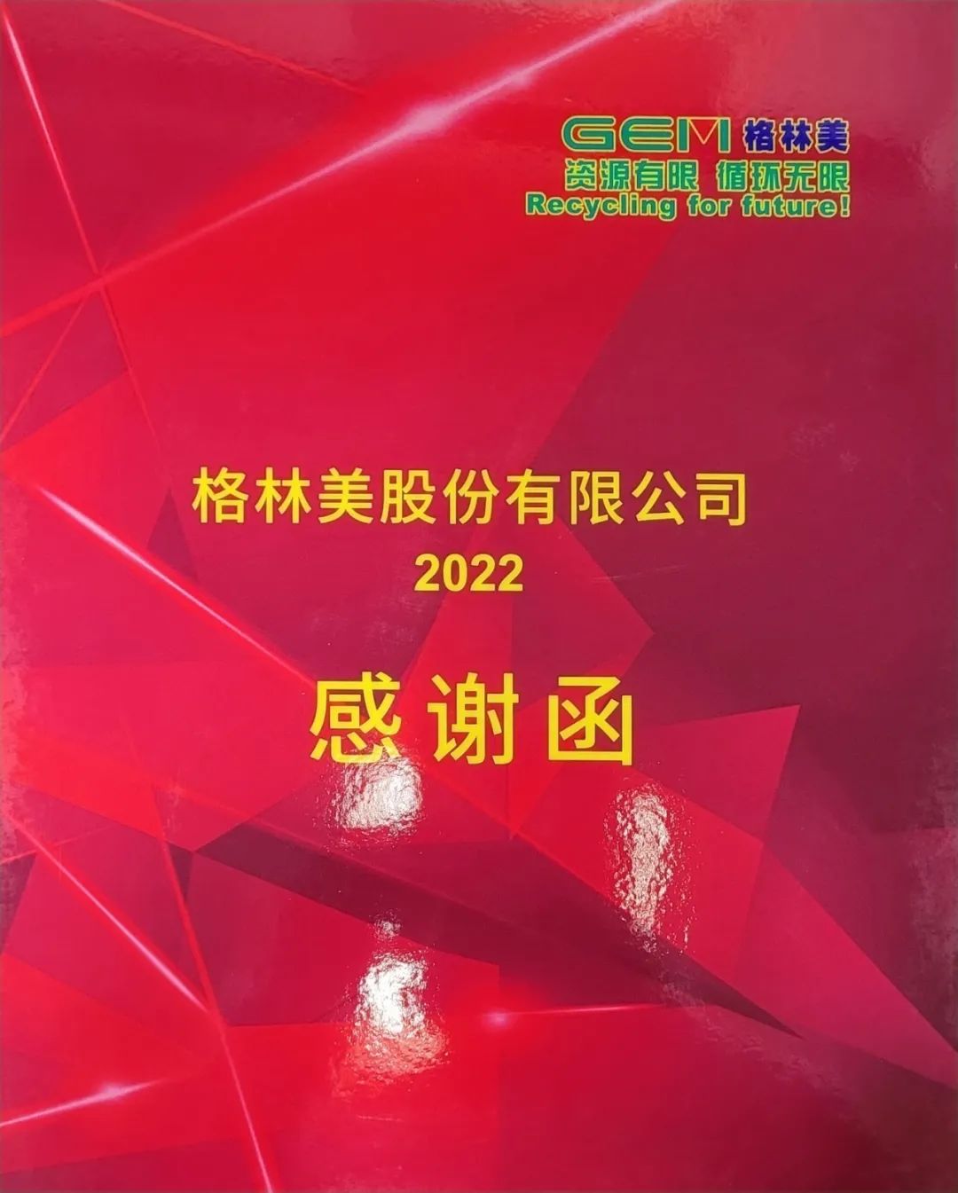 重泵公司收到格林美股份董事長簽發(fā)感謝函