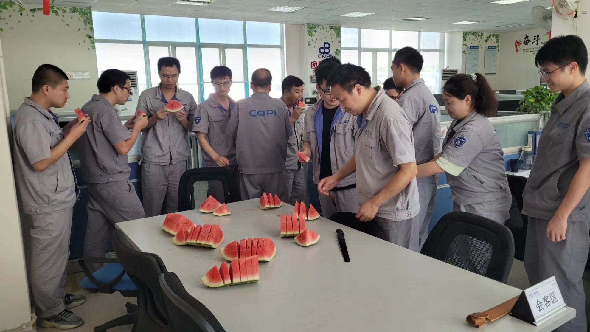 技術中心各部室也時刻將員工的健康放在心上、抓在手上,積極做好防暑降溫工作,及時發放王老吉、西瓜、飲料,確保不讓任何一位戰高溫、搶任務的員工中暑。