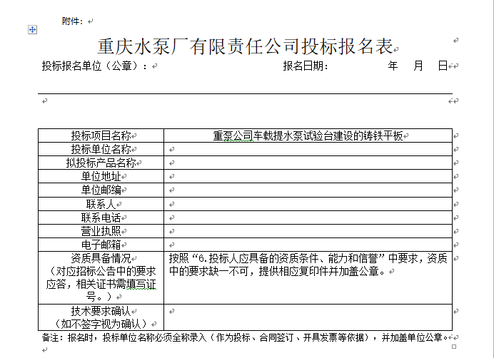 重泵公司車載提水泵試驗臺建設項目 鑄鐵平板 比選公告